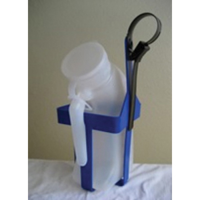 The EZP portable urinal holder is made up of a simple plastic cage and strap that fastens the urinal to a patient's bedrail, wheelchair or walker. The design was made to incorporate a "swiveling" action to adjust to different angles of bed positions, thereby reducing spills. With less spills, nurses can avoid spending time cleaning up messes and spend time on more pressing needs and most importantly, the risk of infection is greatly reduced. All our EZP fit all standard male and female urinals.