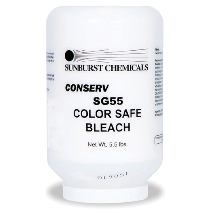 CONSERV SG55 color safe bleach is a solid oxygen bleach that is designed to remove stains, brighten fabrics and improve cleaning.